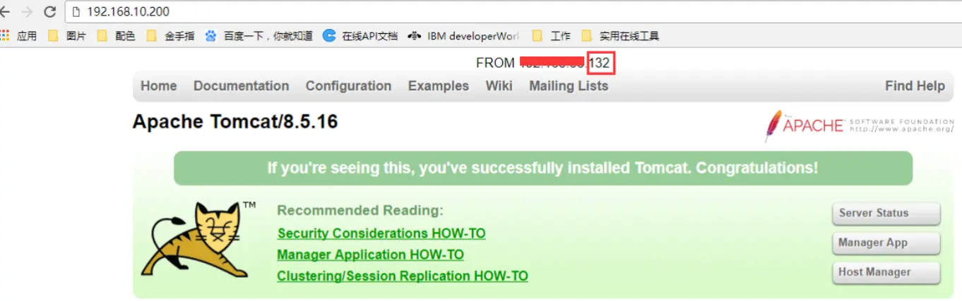 (2)分别启动两个服务器中的tomcat、nginx、keepalived,访问虚拟ip:192.168.10.200,可以查看到访问的是主keepalived服务器的tomcat
