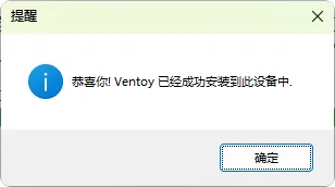 Ventoy安装程序执行完成后,U盘的卷标将自动更改为”Ventoy”
