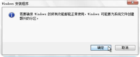 在弹出的系统提示框中,点击”确定”按钮确认分区操作