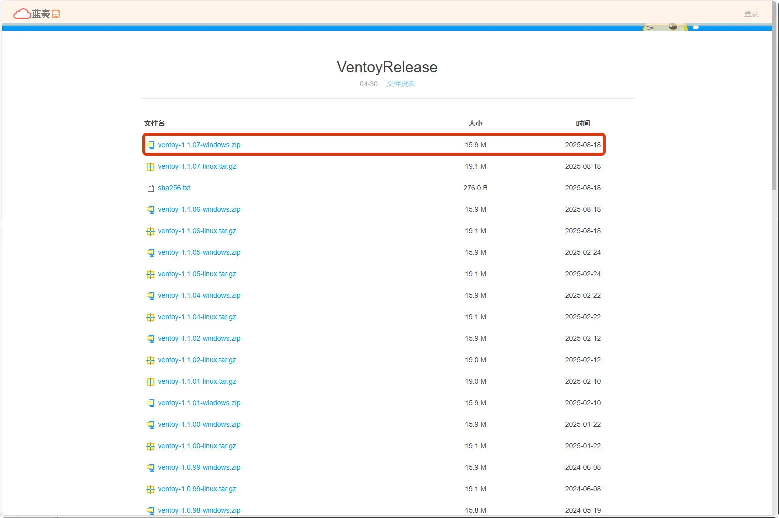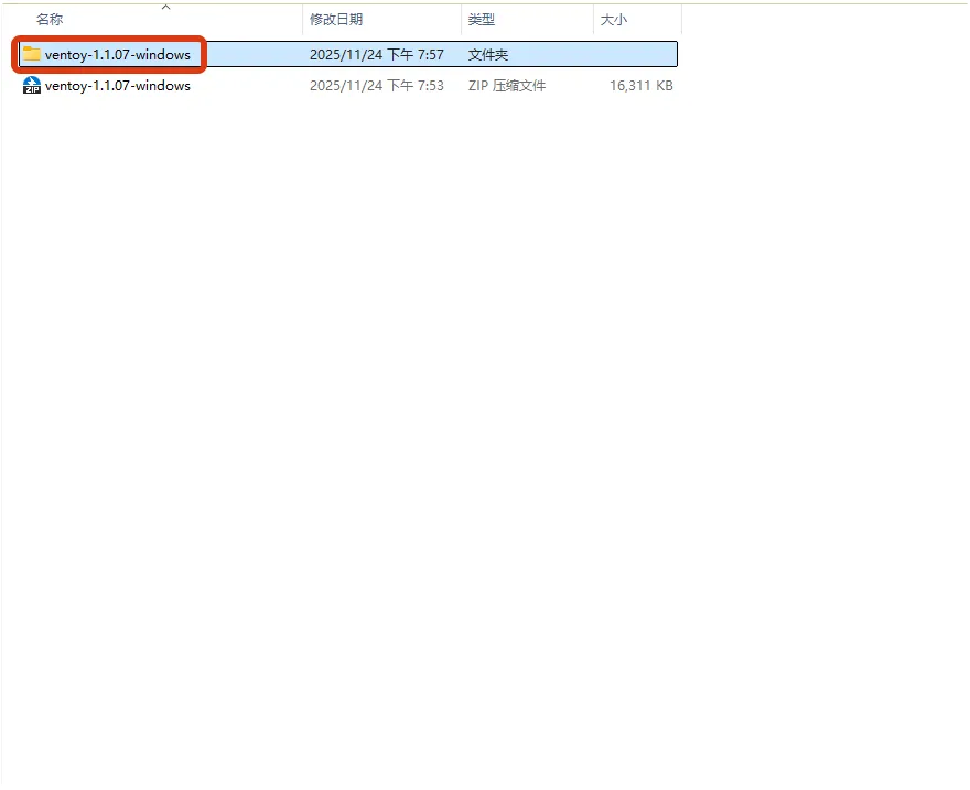选择”ventoy-X.X.XX-windows.zip”(Windows平台版本),建议下载最新稳定版本