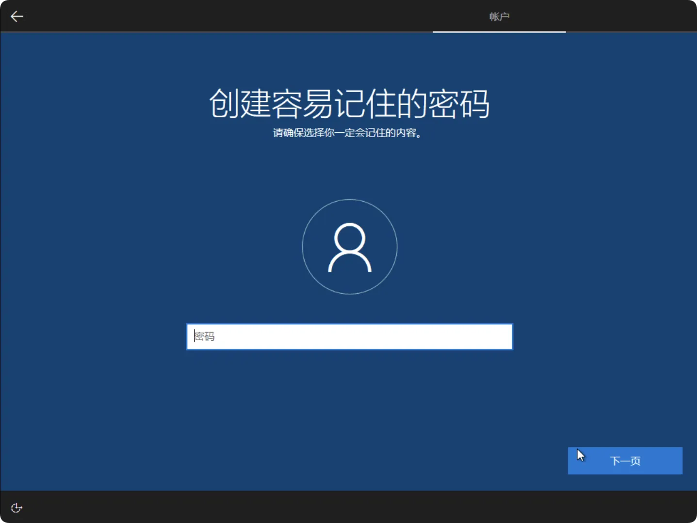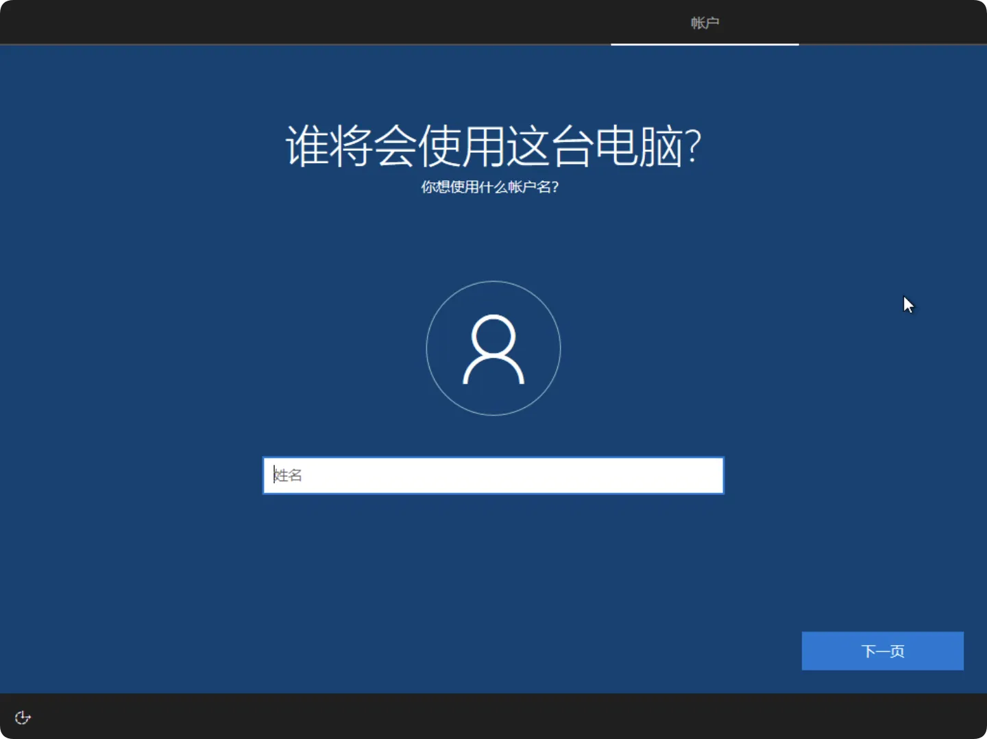 在账户创建界面中,为您的Windows用户账户设置一个用户名