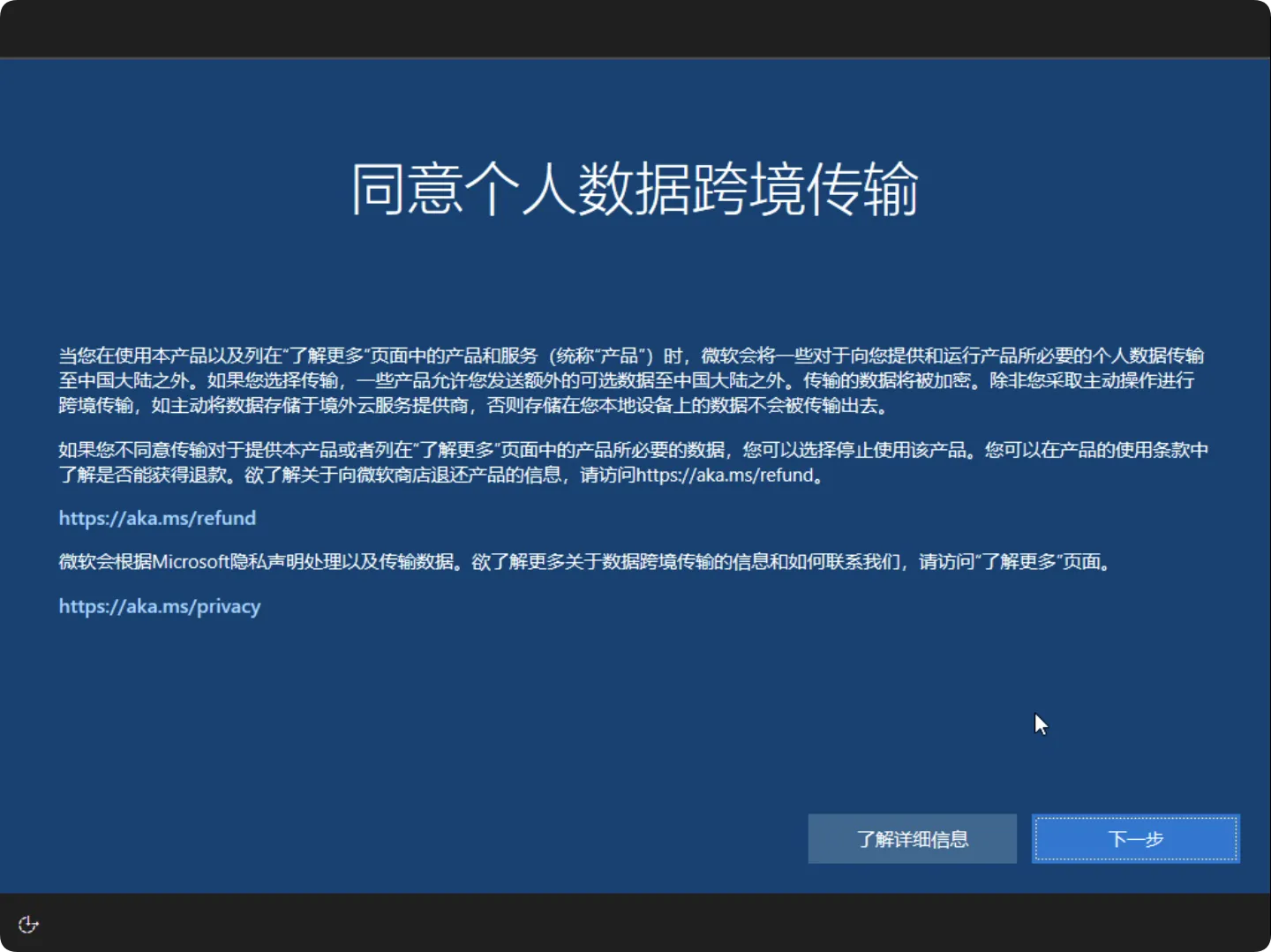 在后续设置界面中,根据系统提示完成剩余配置步骤,点击”下一步”按钮,完成Windows系统的初始化配置过程