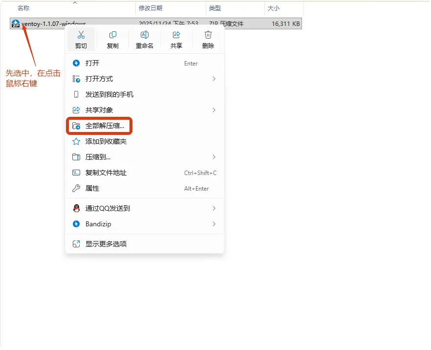 下载完成后,对获取的ZIP压缩包进行解压操作。在Windows资源管理器中,右键点击压缩包文件,选择”全部解压缩”选项