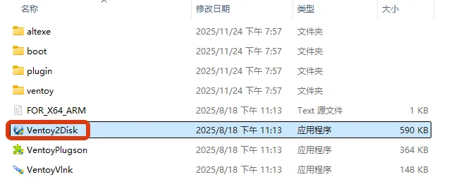 准备一个至少8GB容量的U盘(建议使用USB 3.0及以上接口以提高安装速度),将其插入计算机。在解压后的Ventoy文件夹中,找到并双击”Ventoy2Disk”应用程序